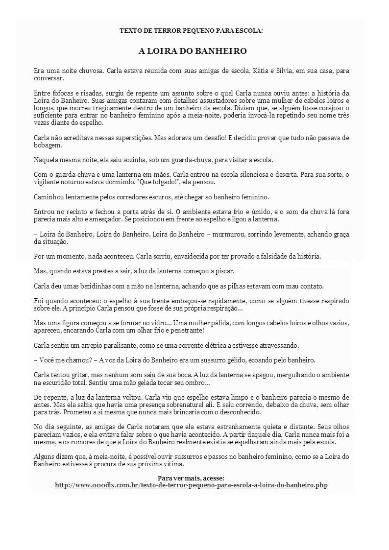 Texto de terror pequeno para escola: